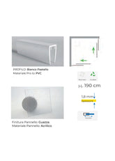 Profilo in PVC bianco pastello. Pannello in Acrilico spessore 1,8 mm effetto guazza. Altezza 190 cm.