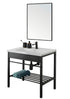 • Struttura in metallo + lavabo in ceramica + specchio con cornice