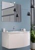 • Base sospesa a due ante a chiusura rallentata in MDF, laminato finitura Bianco lucido, lavabo in ceramica da incasso