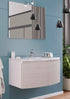 • Base sospesa a due ante a chiusura rallentata in MDF, laminato finitura Rovere Nordico, lavabo in ceramica da incasso