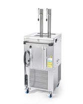 Macchina integrata per la spillatura di birra con colonna e rubinetti, predisposta per l'alloggiamento del riduttore di pressione integrato. E' caratterizzata da elevata potenza di picco e media e da uno spazio di lavoro superiore con vaschetta con scarico integrati.