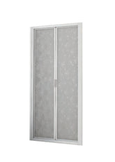 Cabina reversibile, Profilo di compensazione per parete fuori squadra, Scorrimento su pattini, Chiusura magnetica, Profilo in alluminio bianco, Struttura pesante, Pannello finitura BOLLICINE ACRILICO.