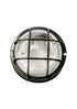 Corpo in materiale termoplastico, diffusore in vetro con griglia di protezione. Portalampade E27. Alimentazione max 60W. Grado di protezione IP44. Dimensioni Ø mm.185x106h.